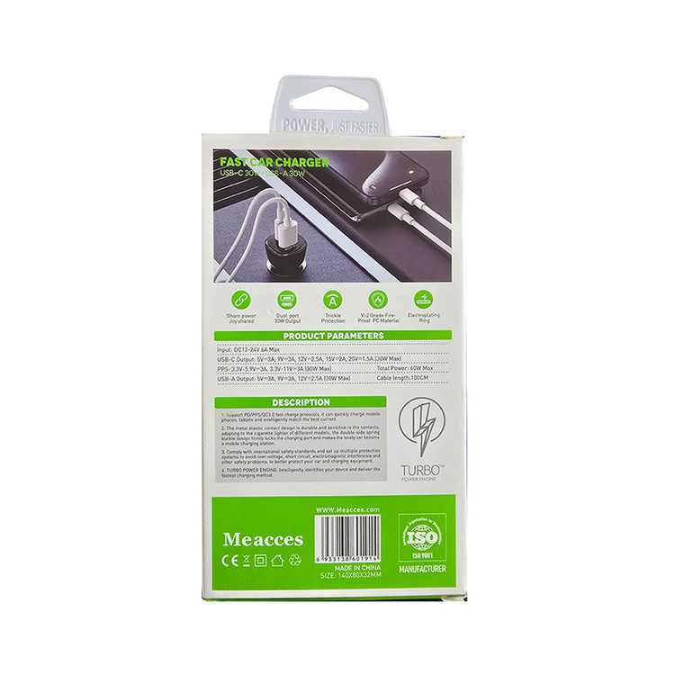شارژر فندکی 60 وات می اکسس Meacces C400T به همراه کابل USB-C
