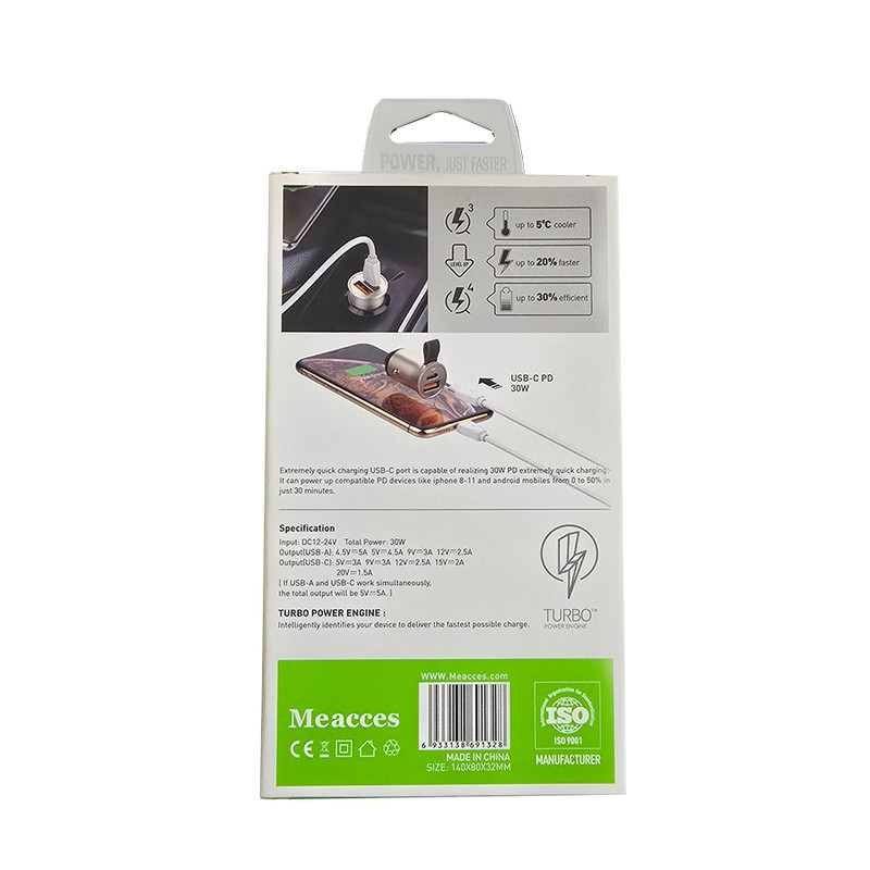 دستهبندی: شارژر فندکیبرچسبها : شارژر فندکی، فندکی، Meacces، می اکسسبرند: می اکسسحداکثر توان خروجی: 30 واتتعداد پورت های خروجی: دو عدد/USB/TCجنس بدنه: الومینیوم