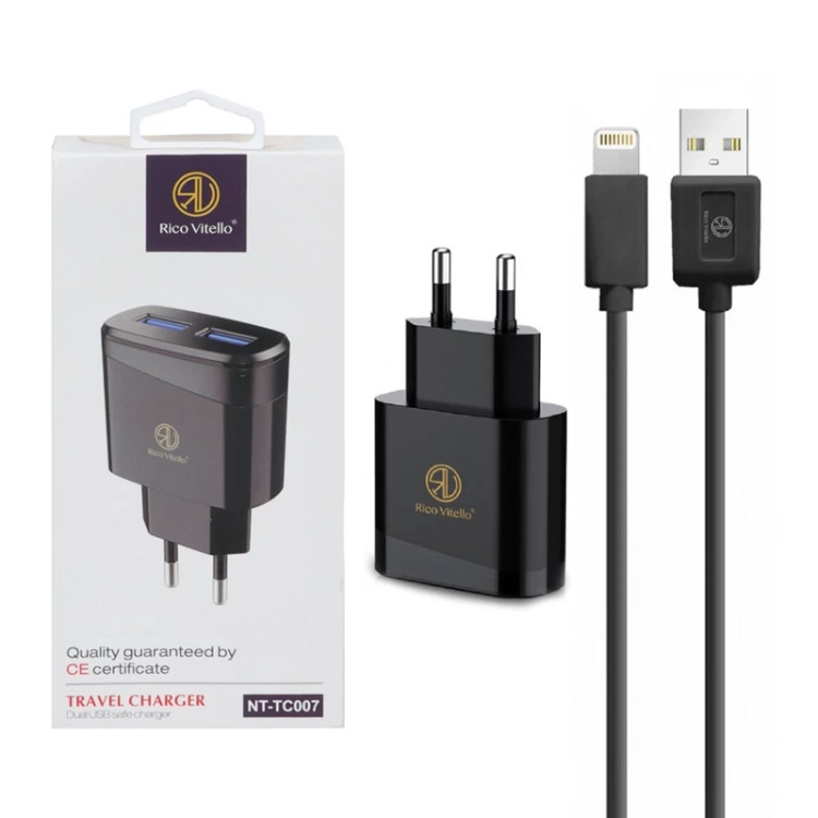 شارژر دیواری فست دو پورت Rico Vitello مدل NT-TC007 12W نوع درگاه خروجی USB رابط کابل همراه Lightning ولتاژ ورودی 240 - 100 ولت ولتاژ و شدت جریان خروجی 5V/2.4A تعداد درگاه خروجی 2 عدد جنس بدنه پلاستیک