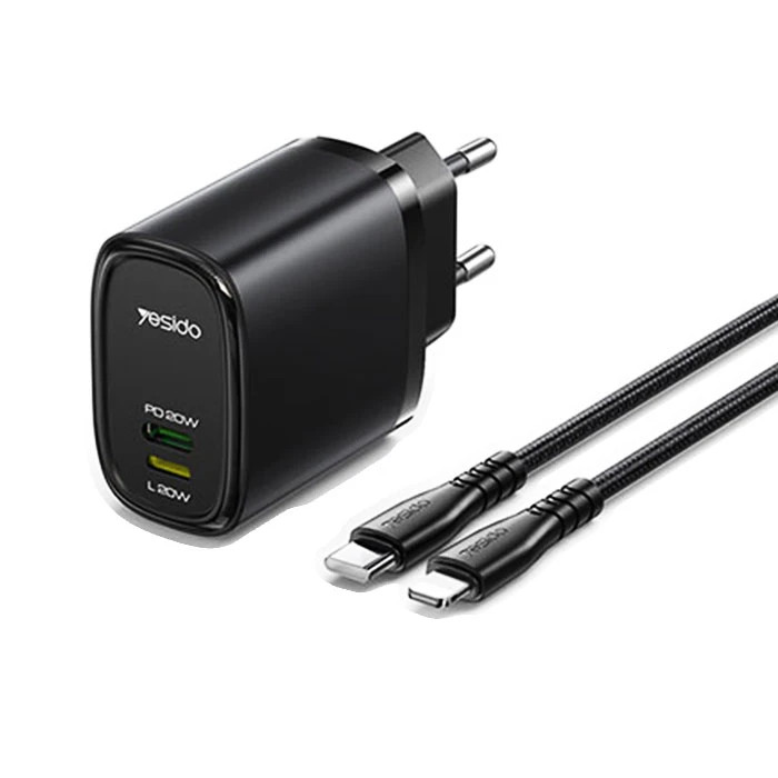 آداپتور Yesido YC44 یک شارژر دوپورتهی قدرتمند با توان خروجی ۲۰ وات واقعی است که همزمان دو دستگاه را با سرعت بالا شارژ میکند.