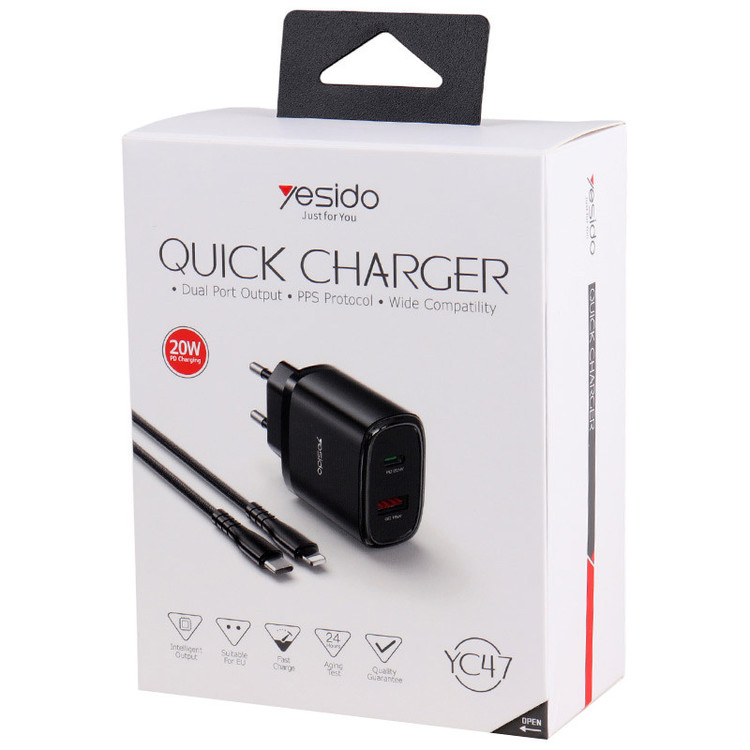 آداپتور YC47 با طراحی جمعوجور و خروجی 20 وات، انتخابی ایدهآل برای شارژ سریع و ایمن دستگاههای شماست. این آداپتور دارای یک پورت Type-C و یک پورت USB است، تا بتوانی همزمان دو دستگاه را با سرعت بالا شارژ کنی.