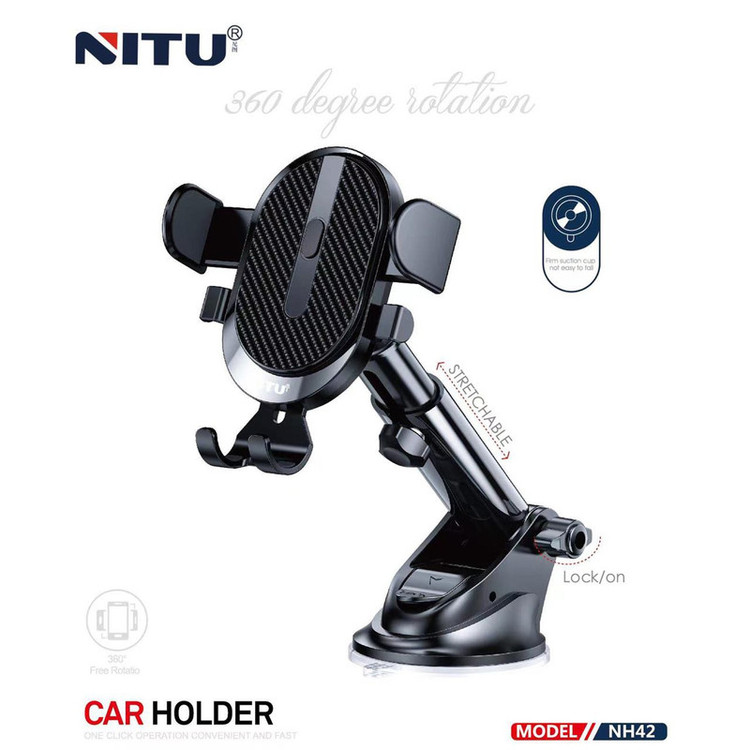 هولدر ماشین نیتو NITU NH42 محصولی از کارخانه نیتو است. این هولدر دارای 2 بازو و یک نگه دارنده در قسمت زیرین میباشد.نگه دارنده دارای یک شیار برای عبور کابل میباشد.در کناره های براکت دارای گیره برای جمع کردن سیم جهت مزاحم نشدن آن تعبیه شده است.پشت براکت هولدر دارای خاصیت چرخش 360 درجه میباشد.براکت هولدر دارای خاصیت چرخش 360 درحه میباشد.هولدر دارای بدنه تلسکوپی با قابلیت تنظیم ارتفاع و زاویه میباشد.هولدر دارای کاپ چسبنده با قابلیت اتصال به داشبورد و شیشه ماشین میباشدگوشی را با یک دست روی هولدر نصب کنید و بردارید.مناسب برای انواع گوشی ها میباشد.جنس بدنه از پلاستیک مقاوم و محکم است.