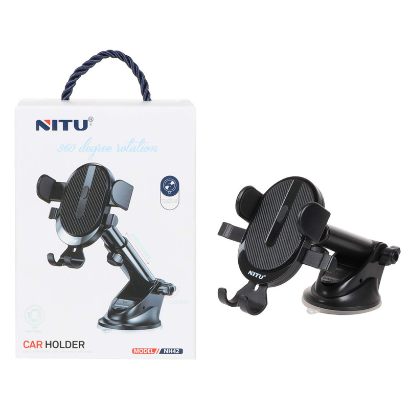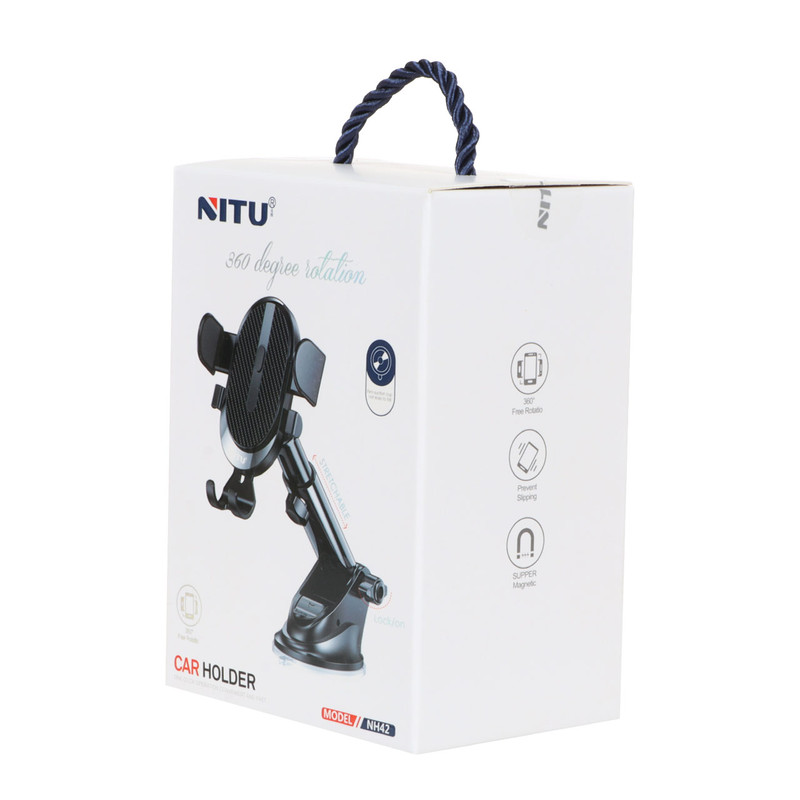 هولدر ماشین نیتو NITU NH42 محصولی از کارخانه نیتو است. این هولدر دارای 2 بازو و یک نگه دارنده در قسمت زیرین میباشد.نگه دارنده دارای یک شیار برای عبور کابل میباشد.در کناره های براکت دارای گیره برای جمع کردن سیم جهت مزاحم نشدن آن تعبیه شده است.پشت براکت هولدر دارای خاصیت چرخش 360 درجه میباشد.براکت هولدر دارای خاصیت چرخش 360 درحه میباشد.هولدر دارای بدنه تلسکوپی با قابلیت تنظیم ارتفاع و زاویه میباشد.هولدر دارای کاپ چسبنده با قابلیت اتصال به داشبورد و شیشه ماشین میباشدگوشی را با یک دست روی هولدر نصب کنید و بردارید.مناسب برای انواع گوشی ها میباشد.جنس بدنه از پلاستیک مقاوم و محکم است.